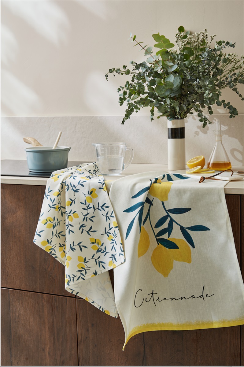 Denna kökshandduk kombinerar funktionalitet och estetik perfekt med sin exceptionella absorptionsförmåga och fräscha design. Perfekt för att torka av bestick, tallrikar och glas, den lovar att stå sig genom tiderna samtidigt som den lägger till en touch av elegans till ditt utrymme. För att åtfölja dina kulinariska förberedelser finns det inget som en läcker lemonad! Allt du behöver är vatten, lite socker, isbitar och så klart saftiga citroner. Föreställ dig ett vackert kluster av dessa gula frukter, symboler för friskhet. Det färgglada mönstret på vår kökshandduk, noggrant bearbetad, framkallar värmen från söder och stunder av avkoppling i skuggan av träden. Ett idealiskt tillbehör för att lysa upp ditt kök och göra varje ögonblick du spenderar på att förbereda dina recept ännu roligare!