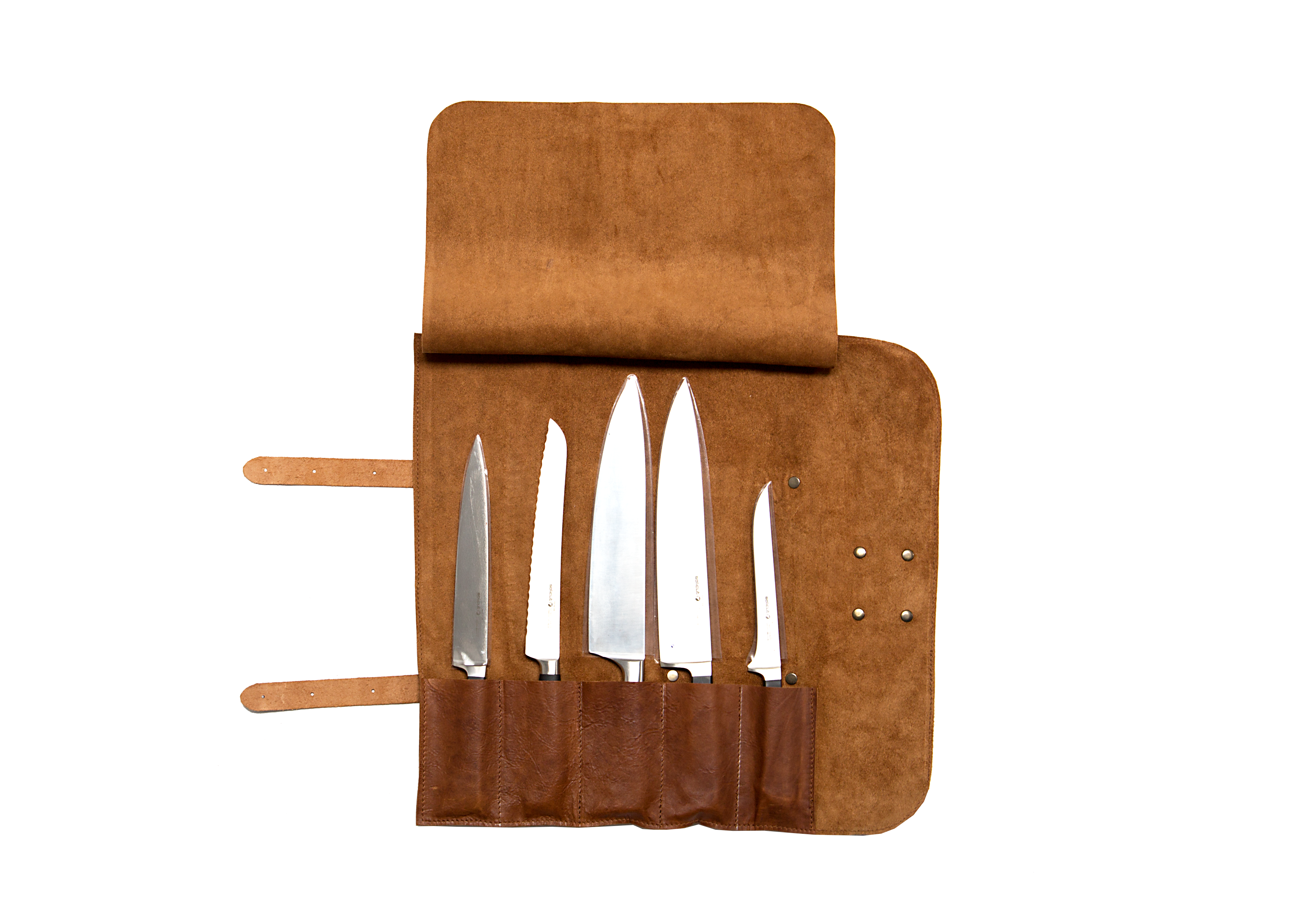 Handgjord knivväska i buffelläder, praktisk förvaring och transport av dina knivar. Finns tilgänglig i 2 olika färger. Plats för upp til 5 knivar