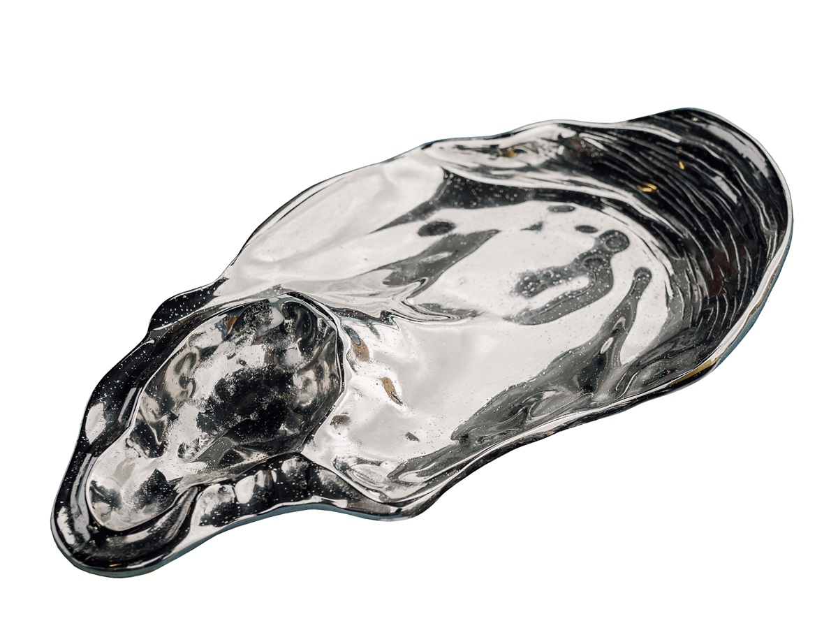 Ett dekorativt ostronskal i aluminium som lyfter serveringen av ostron och andra små rätter. Lägg lite havssalt i botten för stabilitet och en vacker presentation. Perfekt för festliga middagar, bufféer och eleganta serveringar med känsla av hav och kust.