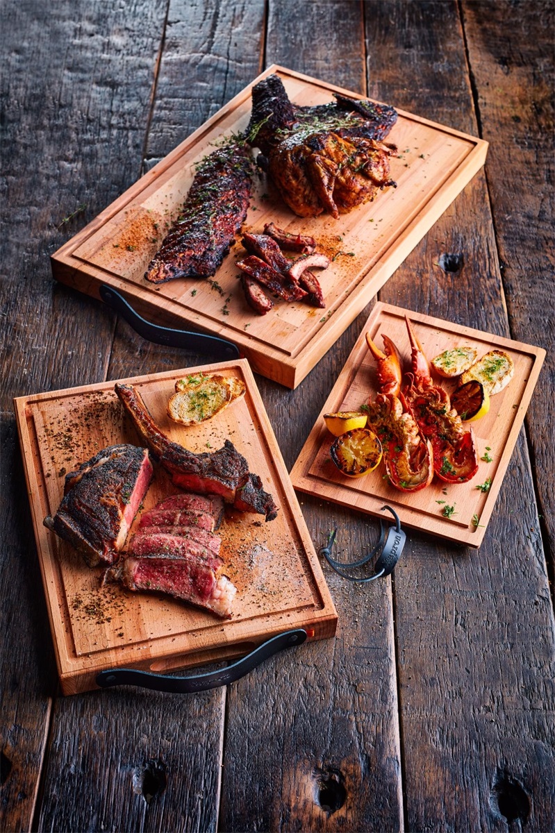 Denna dubbeloljade köttbräda i bokträ är idealisk för att skära och servera biff och annat kött. Ett juicespår runt om kommer att fånga upp all juice för att undvika spill. denna skärbräda är idealisk för att skära och servera biff och annat kött. Den har en stor juiceränna som fångar upp all oönskad juice, vilket säkerställer att dina köksytor hålls rena. Ett starkt läderhandtag fäst med smidda spikar gör det enkelt att hålla och bära denna bräda. Att lägga till allt det där möjligheten att anpassa varje tavla med en lasergravering från din logotyp eller namn, gör den ännu mer speciell.